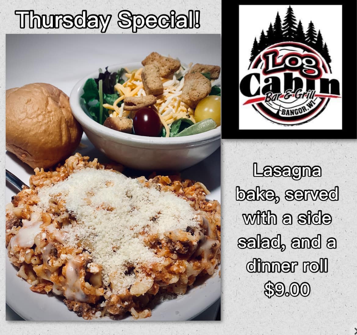 Welcome to Log Cabin - Bangor, a charming eatery nestled at N4697 WI-162, Bangor, WI. Known for its inviting atmosphere, this establishment boasts a diverse menu that caters to every palate. Start your culinary journey with savory appetizers like crispy Onion Rings, hearty Cheese Curds, or zesty Mini Tacos. The main courses shine with delicious options such as the classic Cheeseburger, tantalizing Patty Melt, and flavorful Chicken Wings ideal for game nights.